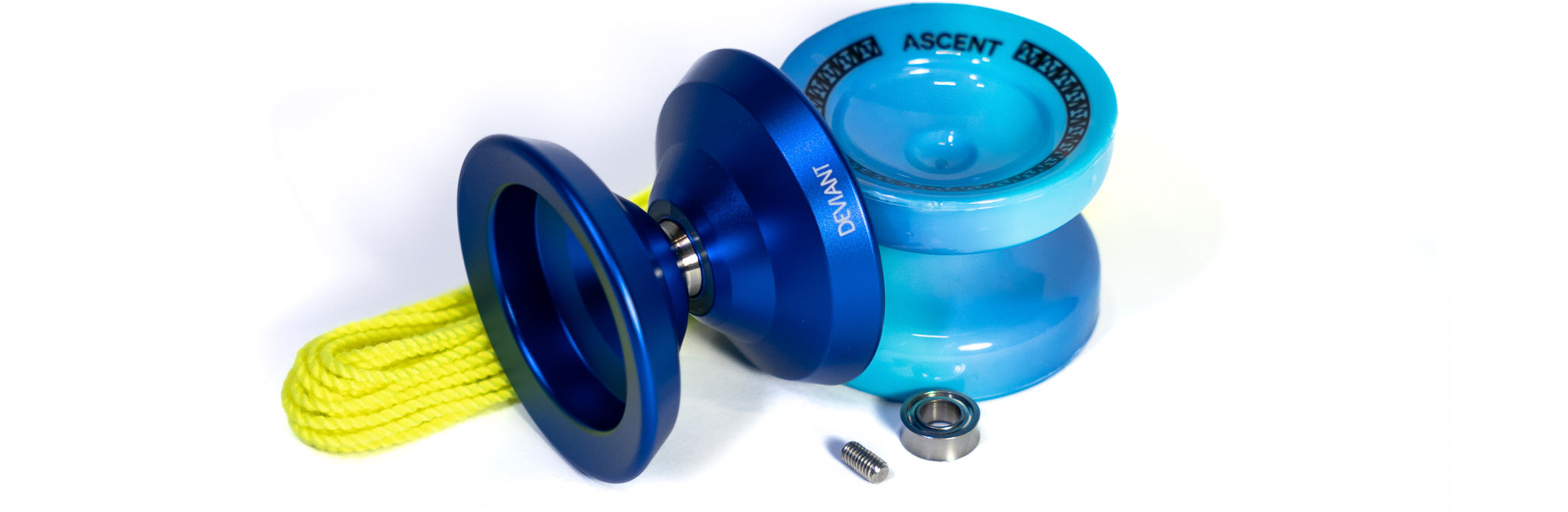 Cada paquete viene con 1 Deviant, 1 Ascent, 1 rodamiento que no responde, 1 eje largo, 1 extractor de rodamientos y 10 cuerdas de yoyo profesionales.