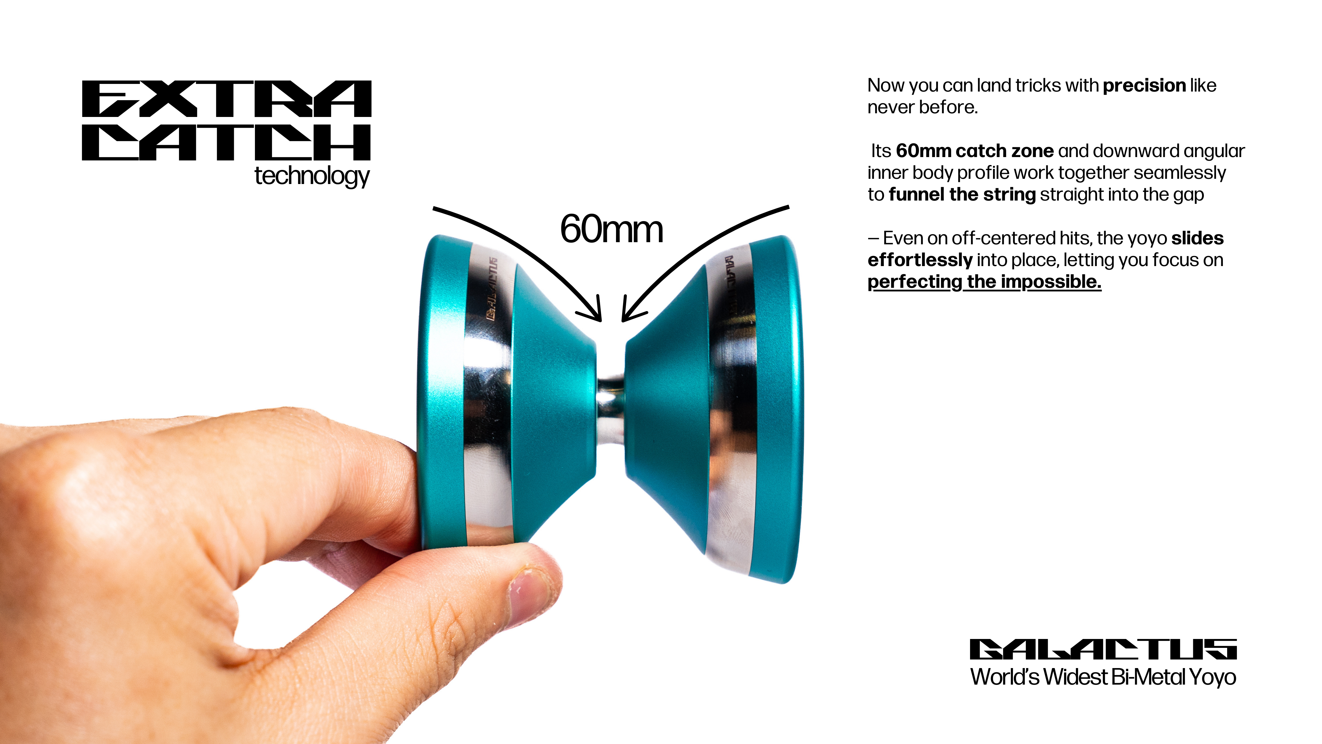A massive 60mm catch zone with stainless steel stability, empowering you to perform massive bangers like a pro. Misses? Never Heard of Them.
